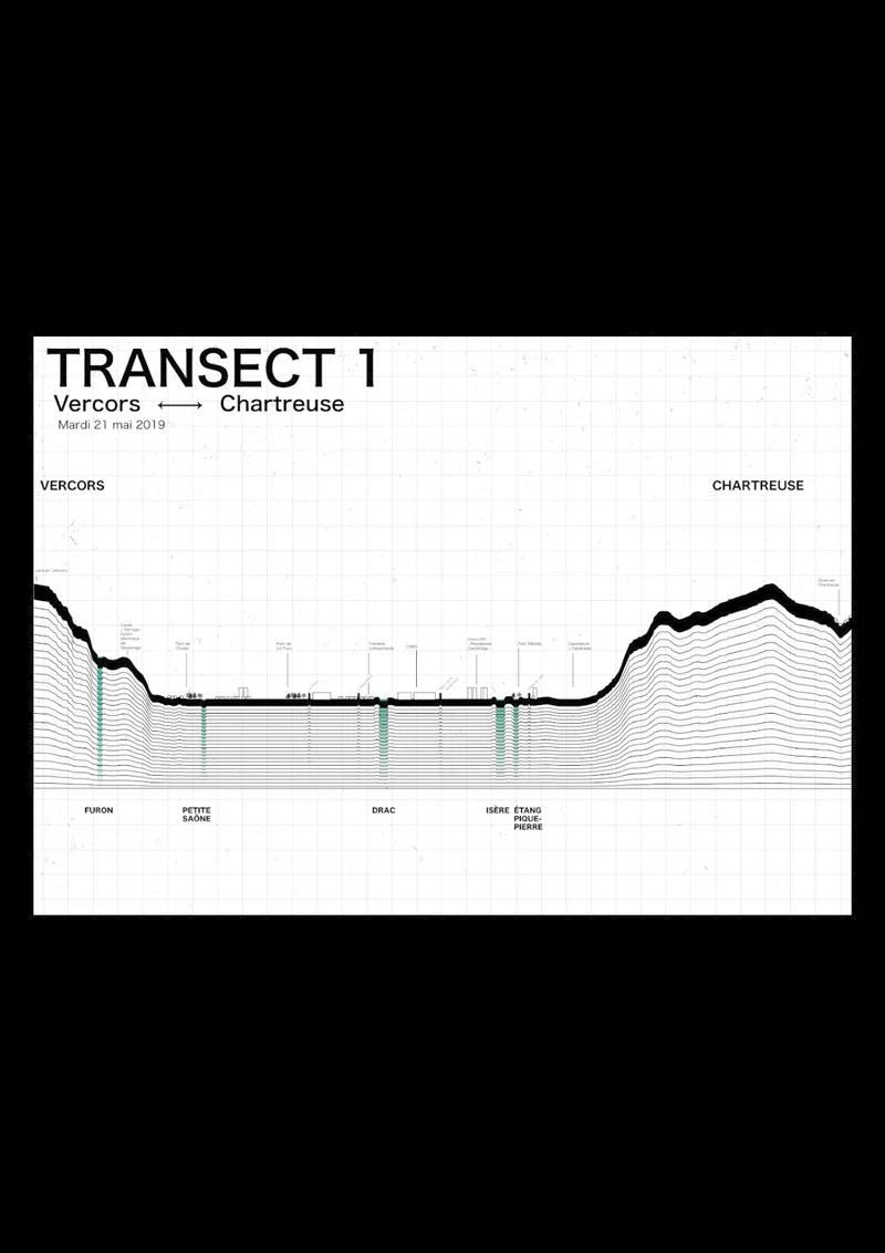 Les Transects sont des coupes architecturales mais à l'échelle d'un quartier, d'une ville ou d'un territoire. Ce sont des supports de travail qui permettent d'être annotés, transportés, questionnés.
