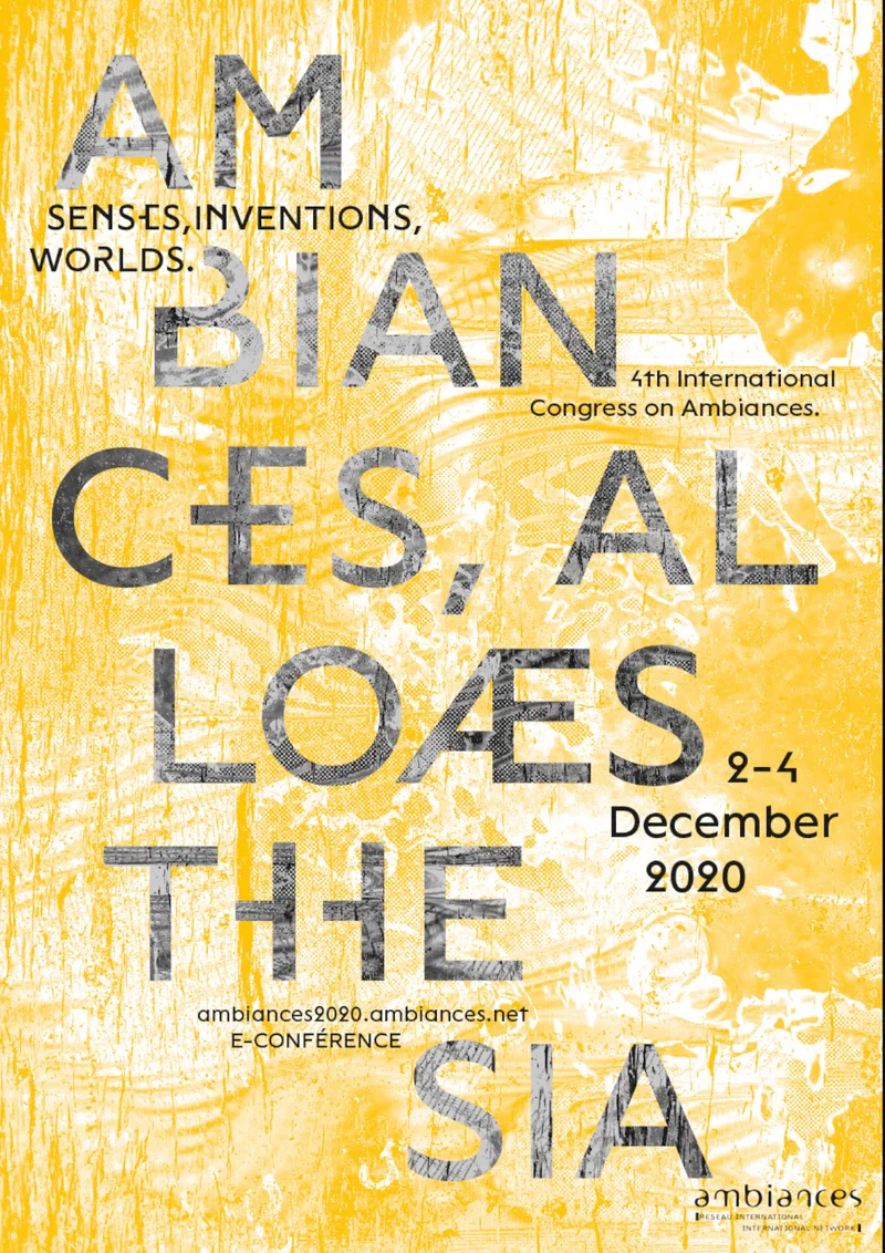 Création de l'identité visuelle du 4ème congrès international d'Ambiances. Utilisation de photographies de sols glanées en extérieur, en ville. Par effet de transparence et de placement, elles se mélangent créant de nouvelles images.