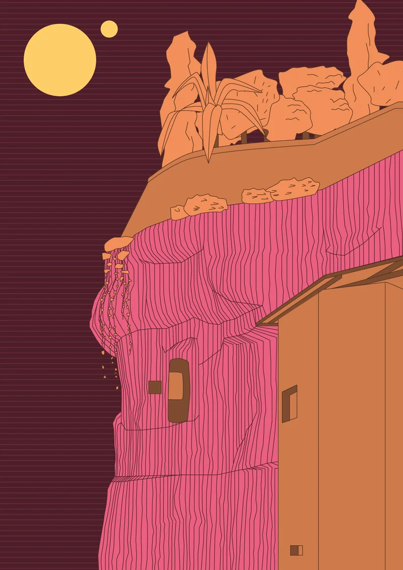 Ces illustrations s'inspirent d'endroits visités et touristiques : les falaises d'Étretat, le village troglodytique de Souzay-Champigny et les rues de Candes-Saint-Martin. Face à la roche, sous les pleins et creux.