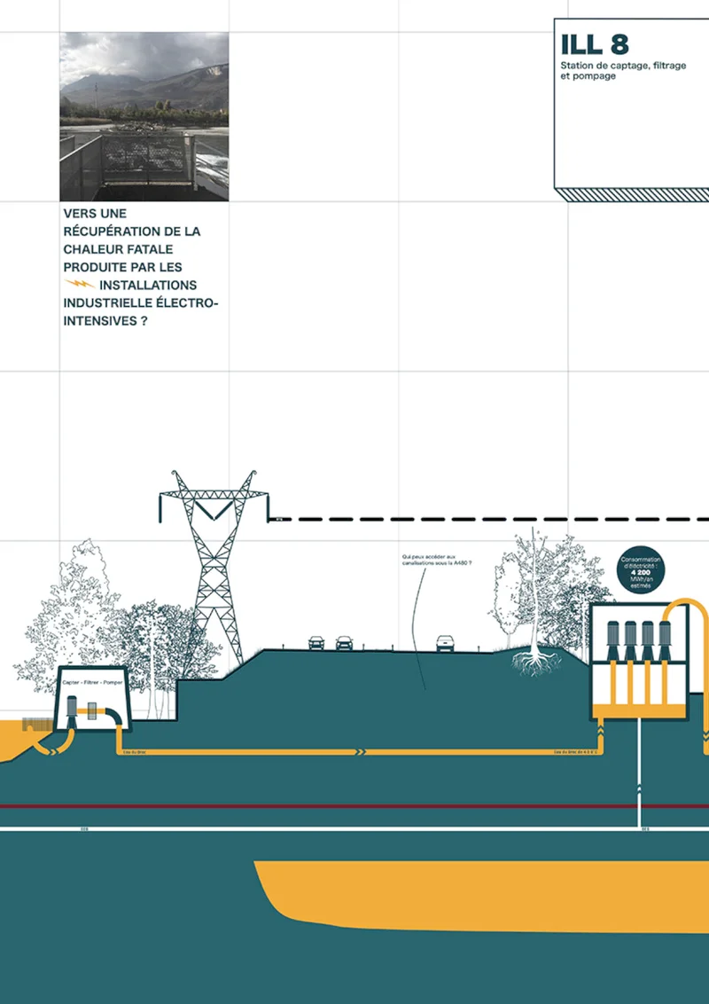 Création d'un Transect de la presqu'île scientifique de Grenoble. Le transect est pensé comme une coupe architecturale mais à l'échelle d'un quartier ou d'une ville.